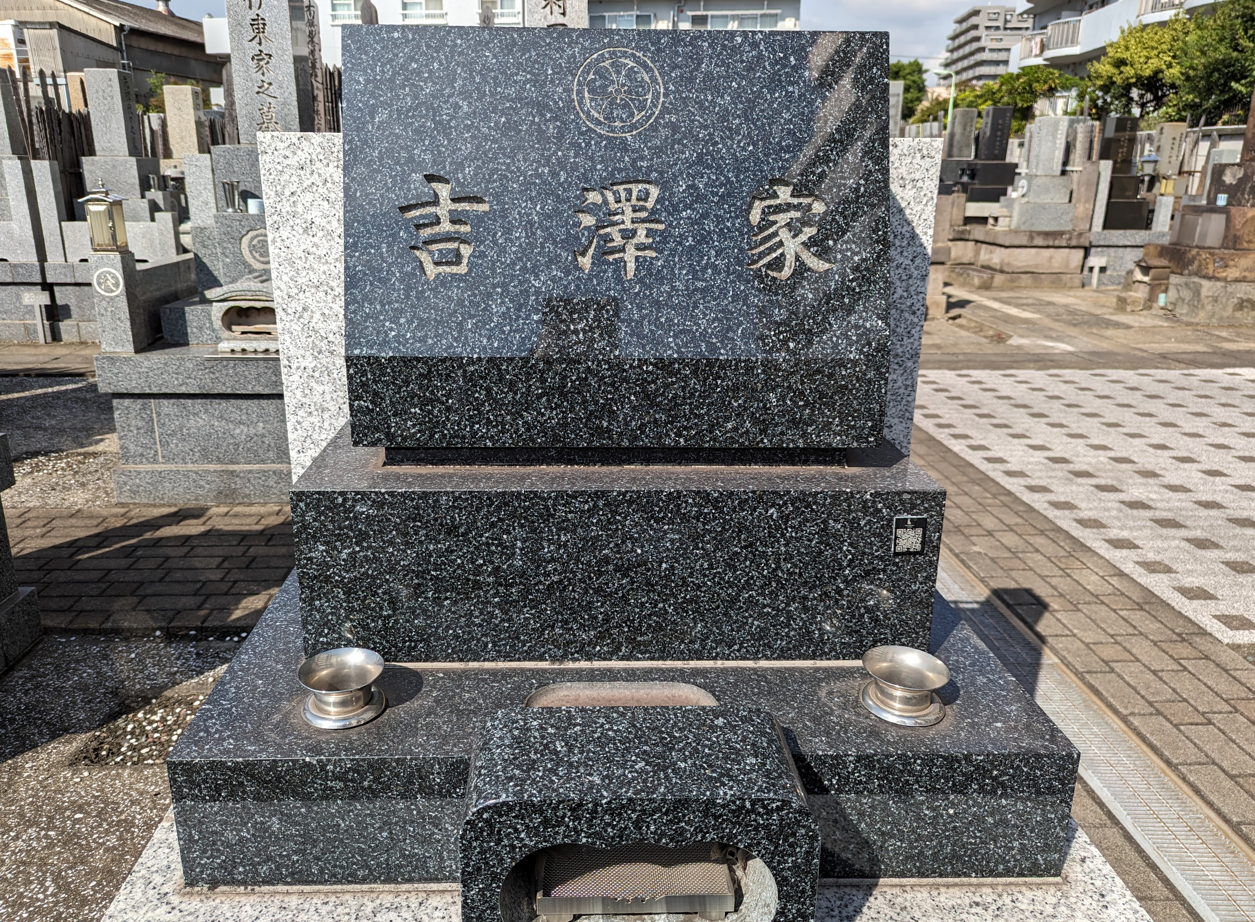 一般的に、お墓の正面にある「棹石(さお石)」と呼ばれる石のより下部の、いずれかの場所に取り付けてください。 (詳細は添付写真をご確認ください。)